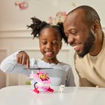 Join Skye in the world of Paw Patrol with the Skye Rescue Fire Chopper. This helicopter toy is over 7-inches long and 4-inches tall, making it the PAWfect size for dynamic pretend play. Skye stands over 2-inches tall in her fire rescue gear, ready to embark on heroic missions. The chopper features a built-in rescue basket and a rotatable propeller, adding excitement to every rescue operation. With a push of a button, activate the rescue basket and save the day alongside Skye's kitty friend. Genuine Paw Patrol styling ensures it looks just like it does in the show. Skye's Rescue Fire Chopper is a helicopter toy, over 7-inches long, and comes with a 2-inch Skye figure, ready for exciting adventures. This toy helicopter features a built-in rescue basket, a button operated rescue claw, & rotatable propellers, offering dynamic pretend play, just like in the show.