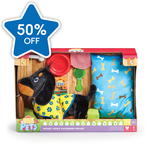 This adorable Dachshund waddles around with an attached collar and lead for your child to guide their pup around the room. Press the buttons on the lead to watch him wiggle to a fun tune. When it’s time for puppy to eat, sit Dachshund down on the little pillow and lay out the included play treats and water bowl. Is it cold outside? Maybe they could dress Dachshund in its cute yellow jacket to keep warm. If not, the bandana will do! The super-cute packaging also doubles as a cosy bed for Dachshund to take a much needed nap.