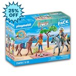The Waterfall Ranch at the foot of the White Mountains is a true horse paradise. Both humans and animals feel at home here. Along with their guest horses, Amelia and Ben embark on a horseback riding trip to the beach. Of course, they have also thought about a delicious refreshment for themselves and their animal companions. The fantastic PLAYMOBIL Starter Packs invite children to dive directly into the diverse world of PLAYMOBIL.