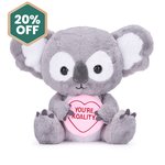 Kevin the Koala thinks ‘YOU’RE KOALITY’ and would love to be your new BFF and cuddle buddy. How cute does Kevin the Koala look holding his bright pink Swizzels Love Heart sweet with the message ‘You’re Koality’ embroidered onto it, his big, soft ears and his adorable velvety nose? This Swizzels Love Hearts Kevin the Koala soft toy has been produced using luxury fabrics, the softest stuffing and is finished with high-quality detailing that adds a loveable personality to this Love Hearts soft toy. Kevin the Koala has been specially made to make sure he gives the best hugs and puts smiles on faces. The Swizzels Love Hearts soft toy collection have been specially designed to help spread positivity and kindness with their fun and sentimental messages. Officially licensed Swizzels Love Hearts soft toy from Posh Paws. Suitable from birth.