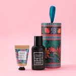 A perfect pair, the bubble bath with hydrating glycerin is gentle on skin. The mini hand cream, packed with emollient shea butter, cocoa butter, jojoba and macadamia oils, leaves skin feeling lovely and soft. Pop the colourful drum in a stocking or dangle from the tree with the velvet loop. Reuse and refill with sweet treats next year.