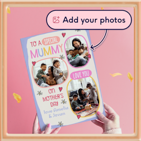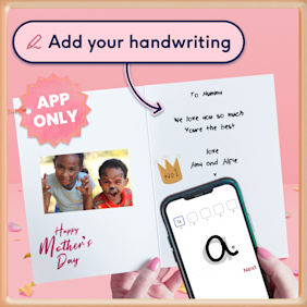 Whether your Mum prefers cool and cheeky or classic and simple, we have a perfect Mother's Day card just for her. Make her heart melt with a Mother's Day photo card – add your favourite snap (or several), add custom text to the cover, and even make it big or GIANT. You can also download our app to add your own handwritten message for that extra thoughtful touch.