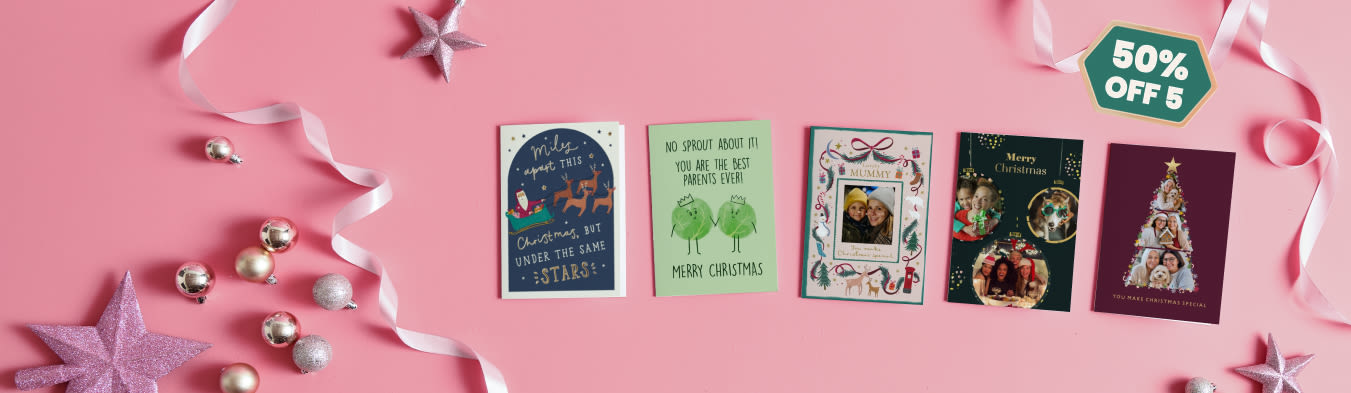 Use code 50OFF5 to get 50% off 5 cards or more. Because this Christmas, everyone deserves a Moonpig.