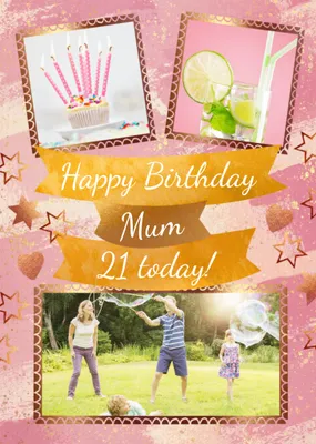Mum 40 Today Photo Upload Pink And Gold Birthday Card
