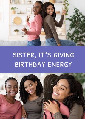 It’s Giving Birthday Energy Photo Upload Sister Card