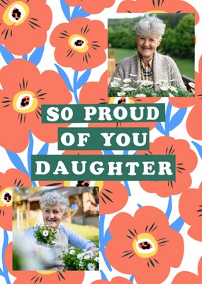 Proud Of You Daughter Floral Photo Upload Birthday Card