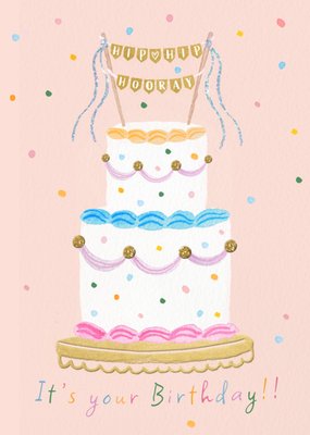 Two Tier Cake Illustrated Confetti Birthday Card