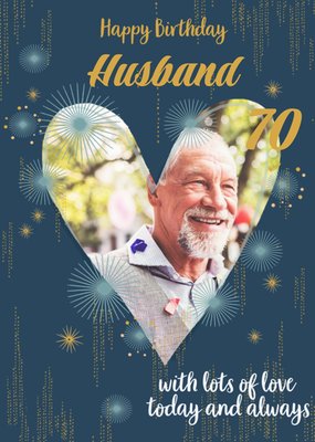Illustrated Gold Patterns Heart Photo Upload Husband 70th Birthday Card