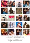 20 photo upload frame card, with central text that reads "Our First Year Together. Faye and Daniel." Order this card as a large or giant card and frame it to show off your time spent together.