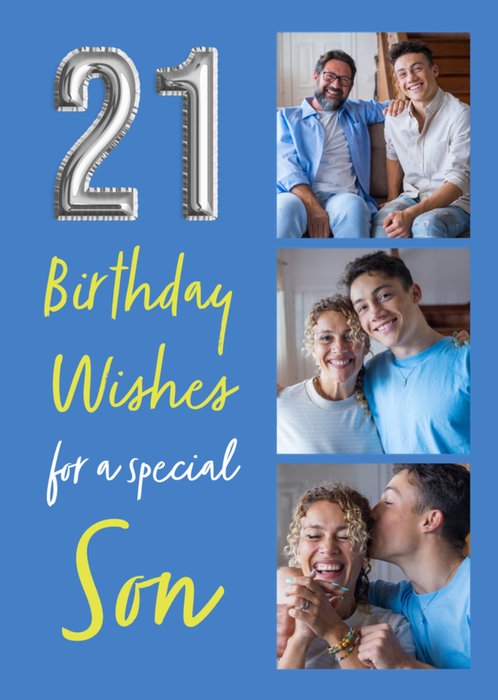 21 Birthday Wishes For A Special Son Balloon Numbers Photo Upload Birthday Card