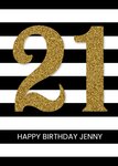 21st Stripe Birthday Card - Gold 21st - Personalised 21st Birthday Card