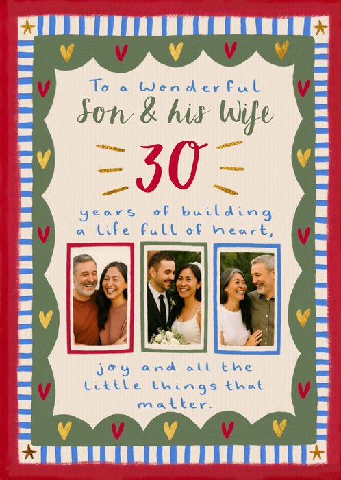 "To a wonderful Son and his Wife 30 years of building a life full of heart, joy and all the little things that matter."