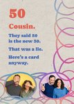 "50 Cousin. They said 50 is the new 30. That was a lie. Here's a card anyway."