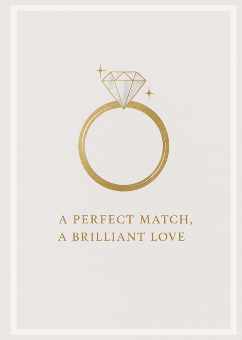 Featuring two overlapping gold wedding rings, centred near the bottom, on a soft cream background, this greeting card features elegant script text above to celebrate a wedding.