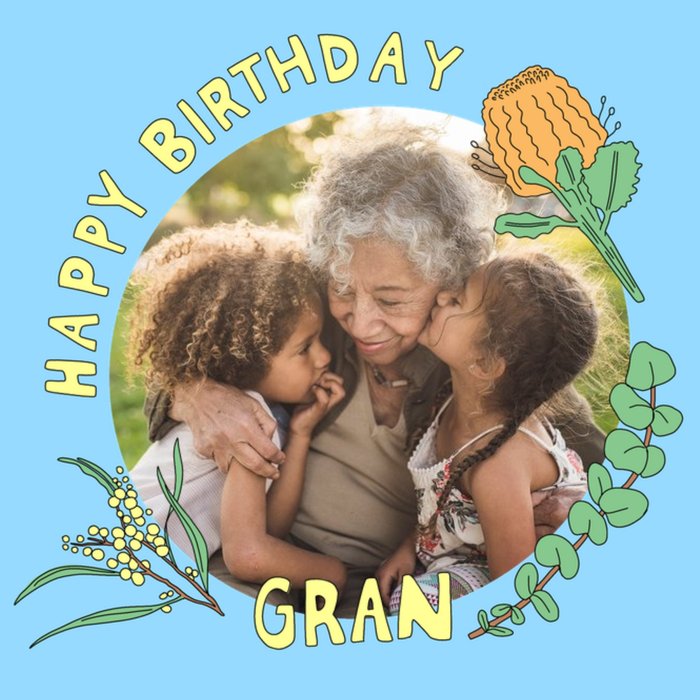 Aleisha Earp Blue Floral Photo Frame Gran Birthday Card