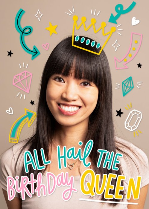 All Hail The Birthday Queen Bright Graphic Photo Upload Birthday Card