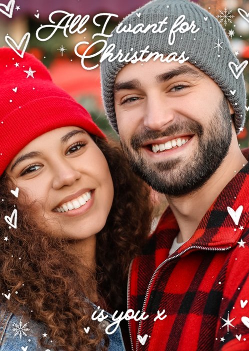 Featuring a full photo frame decorated with snow flakes, hearts and stars.