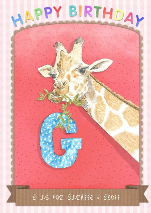 Alphabet Animal Antics G Is For Personalised Happy Birthday Card