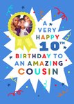 Featuring 1 photo upload area in a rosette shaped frame with colourful text in a flash burst on a sky blue background.