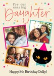 Amazing Daughter Cat Illustration Photo Upload Birthday Card