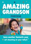 "Amazing Grandson Freddie Have Another Fantastic Year (Of Shouting At Your Telly!)." Name can be customised.