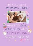 "To the amazing mummy-to-be. Here's to cake, cuddles and never peeing alone again!"
