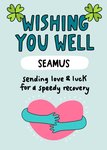 Text reads: "Wishing you well Seamus, Sending love & luck for a speedy recovery".