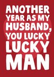 Text reads: "Another year as my husband you lucky lucky man".