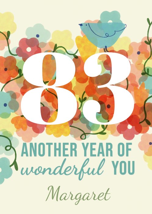 "83 another year of wonderful you Margaret". '83' and 'Margaret' can be personalised!