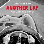 Aperture Photographic card featuring a black and white photo of a classic car being driven on a race track. The editable part of the caption reads Dad, Here's To, followed by a typographic, non editable Another Lap, and then a simple Around The Track.