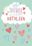 "Baby shower so let's celebrate Kathleen". 'Kathleen' can be personalised!