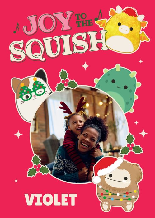 Front of card: Featuring Barbie with festive illustrations and a circular photo frame. Text reads: "Merry Christmas Charlie". 'Charlie' can be personalised!