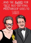 Text reads "...and the award from 'best age-defying mousturiser' goes to Sarah".