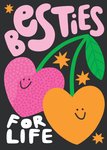 Featuring bold colourful typography on a black background with stars and an illustration of 2 cherry hearts with a smiley face on them.