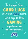 "To a super Son, good luck with your GCSE exams, let's hope all that gaming helped you soak up some revision..!".