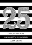 Black And White Striped Personalised Happy 25th Anniversary Card