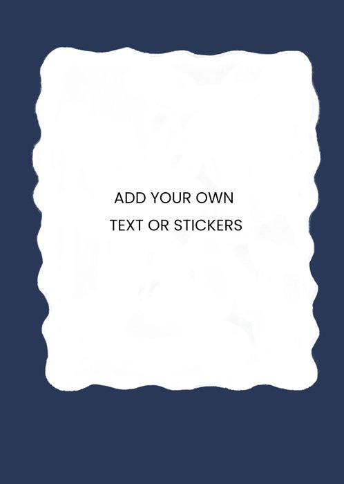 Front of card: A modern design with a blue wavy border. This fully editable design allows you to add text and stickers to create a truly personalised card.