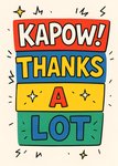 Featuring bold comic-style lettering with colourful blocks of red, blue, yellow, and green, decorated with stars and sparkle lines on a cream coloured background.