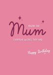 Bright simple typographic design sitting on a pink background The non editable caption reads You're the Mum that everyone wishes they had Happy Birthday