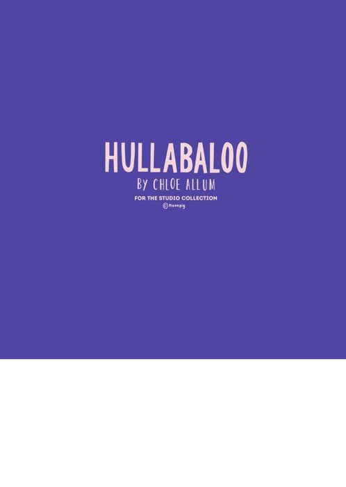The rear of the card has a purple background with the Hullabaloo and Moonpig logos.