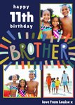 "Happy 11th birthday brother love from Louise x". '11th' and 'love from Louise x' can be personalised!