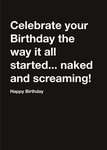 Carte Blanche Celebrate birthday naked and screaming Happy Birthday Card