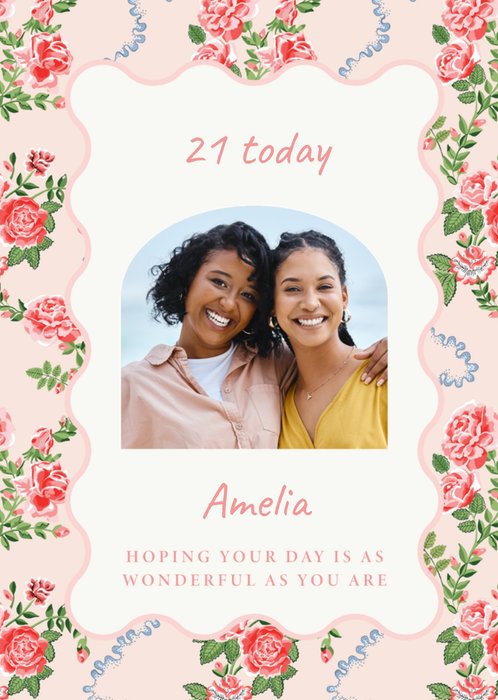 Cath Kidston 21 Today Floral Photo Upload Birthday Card