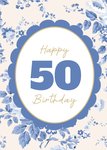 Cath Kidston Happy 50 Birthday Blue Floral Pattern Card