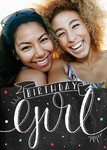 Chalkboard Style Bottom Border Personalised Photo Upload Birthday Girl Card