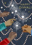 Cheerful Illustrated Hands Holding Sparklers Happy Diwali Card