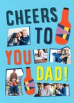 Front of card: Featuring five photo upload areas with unusual-shaped frames. There are two minimalistic-style beer bottles and big bold text, both in a cutout paper effect.