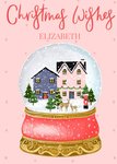 Christmas Wishes Cute Snowglobe Village Personalised Christmas Card