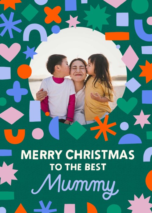 Circular Photo Frame Surrounded By Colourful Shapes Mummy's Photo Upload Christmas Card