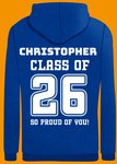 "Christopher, class of '26, so proud of you!" "Christopher" is editable.